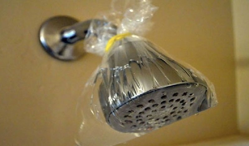 Avvolgete l’ugello del soffione in un sacchetto di plastica con dell’aceto e lasciatelo per una notte.