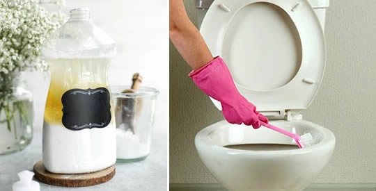 Sapone per piatti. Anche se non è un prodotto naturale, è molto meno dannoso per la nostra salute rispetto ai prodotti industriali per la pulizia del bagno. I prodotti biologici sono ottimi anche per la pulizia dei servizi igienici.