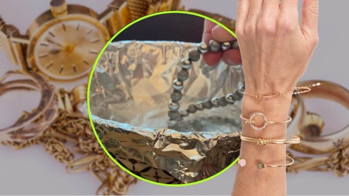 Per i gioielli in argento, si prepara una ciotola con all’interno un po’ di alluminio per coprirla completamente. Si versa quindi un po’ di sale grosso e acqua calda e si immerge il gioiello nella ciotola. Lasciare agire per un massimo di 10 minuti, quindi passare un panno pulito e asciutto. Anche in questo caso, il risultato sarà eccezionale.