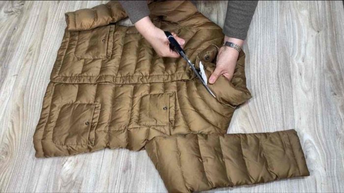 In questo modo, il piumino avrà dettagli denim che nessuno ha mai visto e che nessuno ha nel proprio guardaroba. Un capo assolutamente invidiabile, il tutto senza spendere un centesimo. Il giubbotto di jeans tagliato alle maniche e le parti utilizzate per realizzare il nuovo piumino possono, invece, diventare un bellissimo gilet.