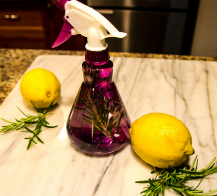 Detergente fatto in casa a base di aceto, limone e rosmarino