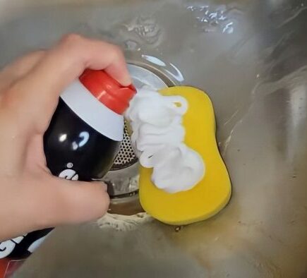 Schiuma da barba sulla spugna per lavare i piatti: risolve una serie di problemi in cucina