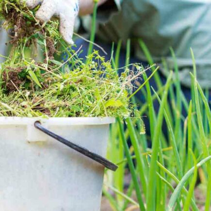 Het onkruid dat tussen de gazons, op de bestrating of …