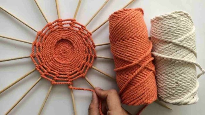 Con calma e pazienza, iniziamo anche ad avvolgere il filo intorno ai bastoncini, come mostra chiaramente il video. Una volta che siamo riusciti a formare un cerchio con il filo delle dimensioni della base precedente, possiamo andare a tagliare le parti superflue dei bastoncini.